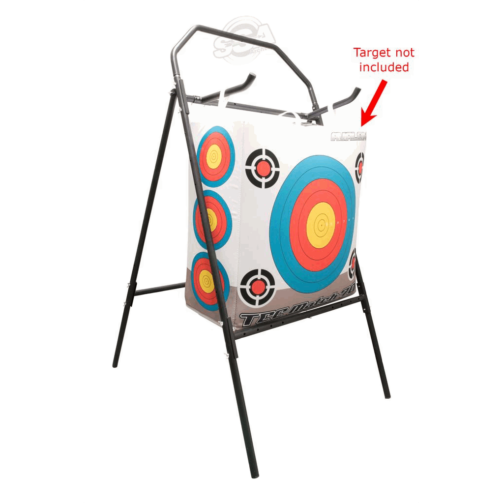 Robuster Vierbeinständer aus Metall, universell geeignet für fast alle Zielscheiben, auch ein Schießsack lässt sich befestigen (nicht im Lieferumfang enthalten). Querbalken oben montiert für hängende Montage eines Ziels, Querbalken unten montiert für konventionelles Draufstellen einer Zielscheibe.