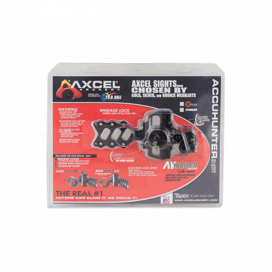 With a price aimed at the mid-level hunters, high quality remains consistent to AXCEL®'s toughest standards. A sleek and solid mounting bracket and elevation bar make the AccuHunter a dependable choice among the hardest of hunters. An adjustable 20 yard dead stop helps you dial back to 20, 30, 40 yards in a second, while the 45 degree rear facing sight tape helps you keep your bow arm extended during adjustments for minimal movement in a tree stand! True first, second, and third axis adjustments are similar to AXCEL®'s top quality tournament sights. Superior features include a push-button windage lock that ensures nothing will be able to adjust your sight knob without you knowing. It's tough green accents include the elevation lock lever, the pointer, and the windage lock. AccuHunter sights can be transformed into right or left hand dexterity with no additional parts.