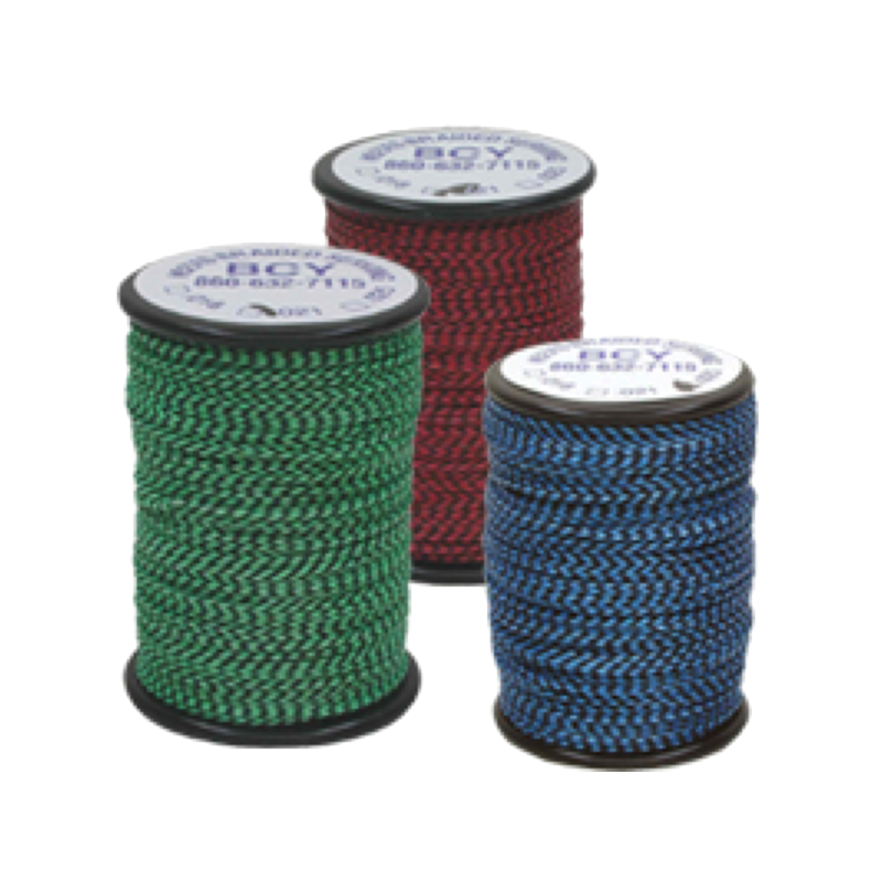 20% stronger and more durable than standard black and white serving due to a higher percentage of Spectra or Dyneema. Grips well. Standard colour is black.