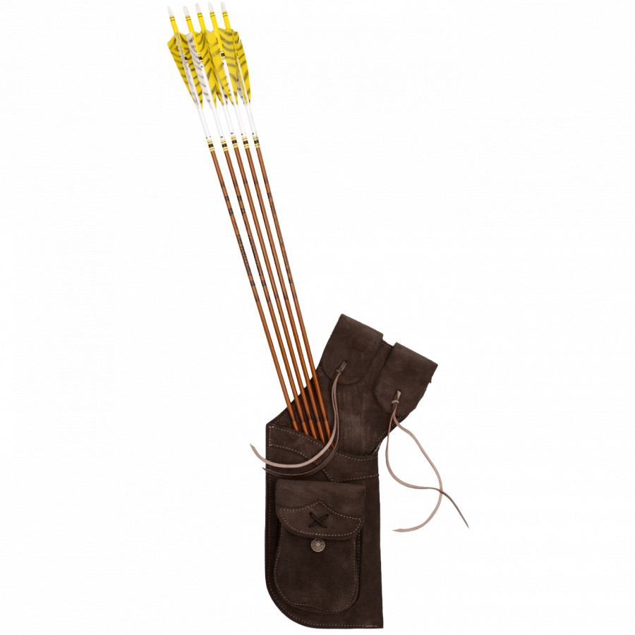 Der Holsterköcher ist aufgrund seiner kompakten Größe und praktischen Handlichkeit sehr beliebt. Die Pfeile sind sicher und fest untergebracht, ohne lautstark aneinander zu klappern. Ein optisches Highlight aus hochwertigem Wildleder!