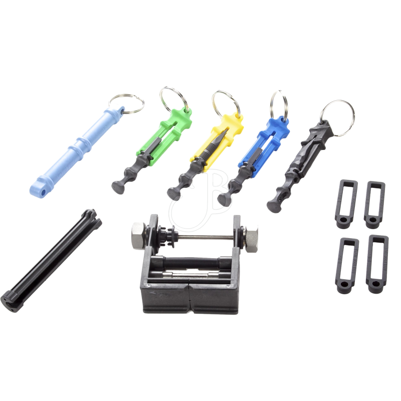 Enthalten sind verschiedene Werkzeuge, die zum einen die Arbeit mit dem Winder unterstützen und erleichtern, zum anderen praktische Helfer im Alltag eines jeden Bogenschützen sind.
