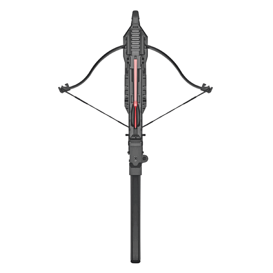 Sehr kompakte und üppig ausgestattete Repetier-Pistolenarmbrust. Im Lieferumfang befinden sich ein 60 Pfund und ein 90 Pfund Bogen (werkzeugfrei zu wechseln), ein Speedloader, 16 Bolzen sowie Kleinteile.