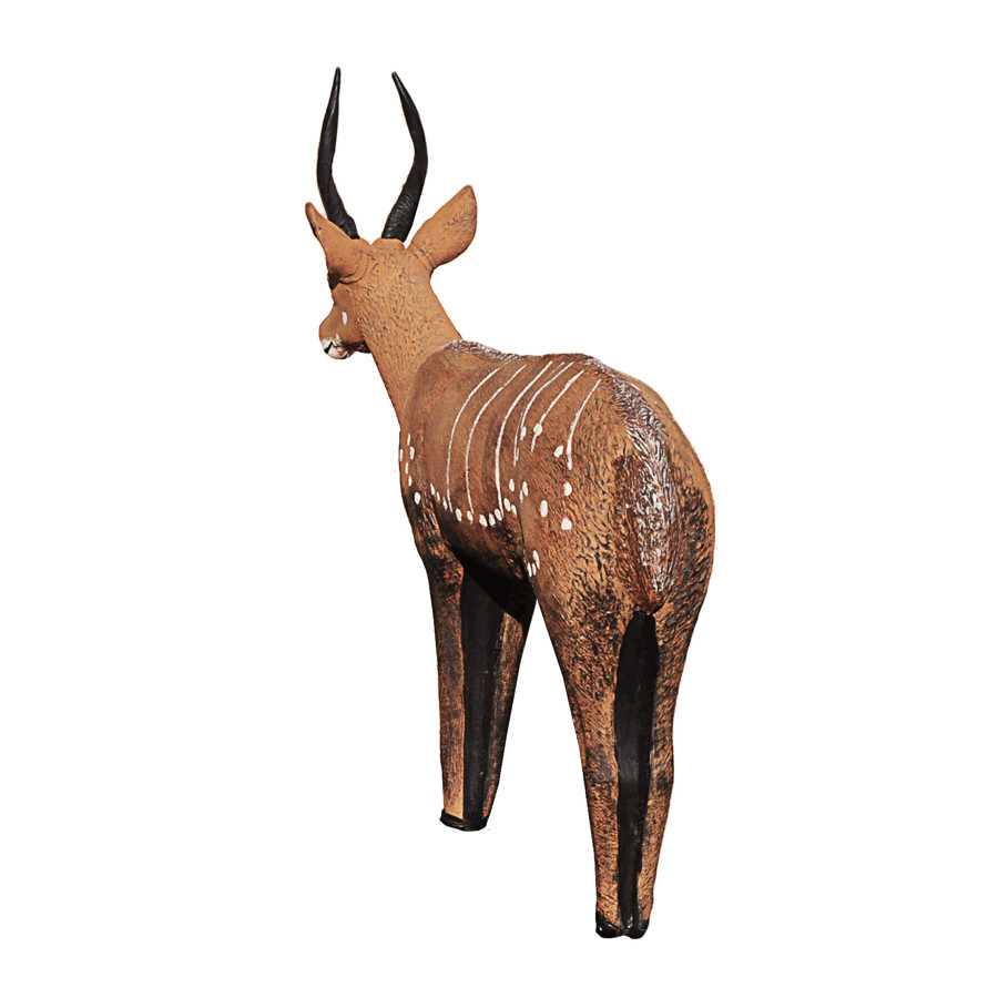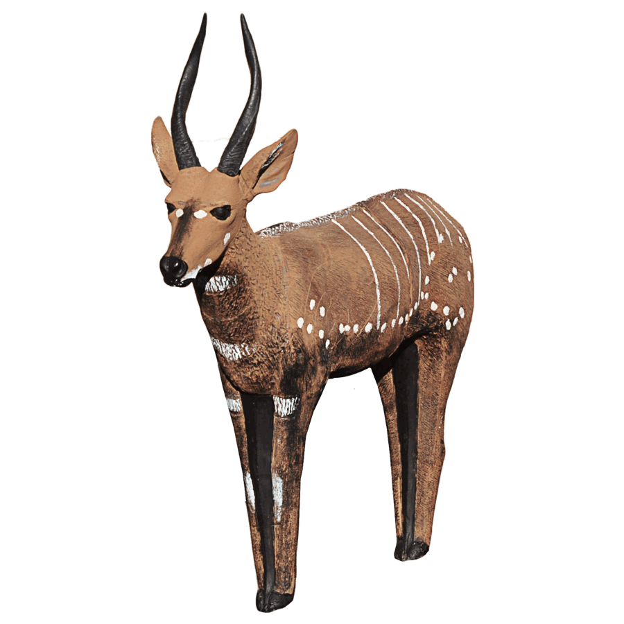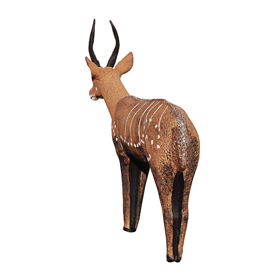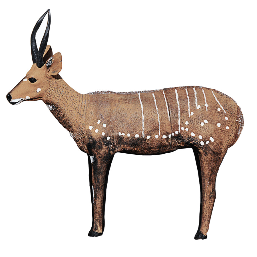 The Bushbuck (Tragelaphus scriptus) is a very shy animal. The medium-sized antelope lives in dense bushes and flees at the smallest possible threat. In some subspecies in South Africa the white spots on the body are barely recognizable. When the flee, they make sounds similar to a barking dog.