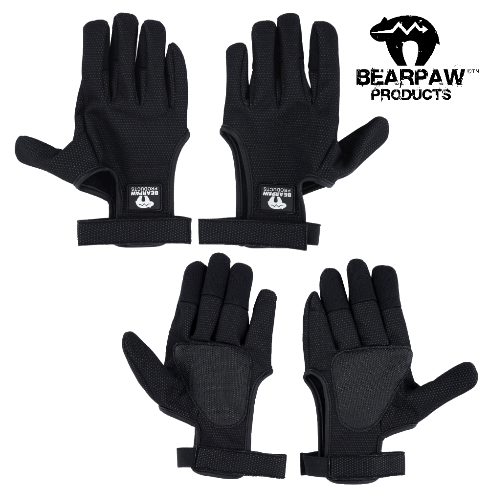 Made from the same material as our popular Black Glove. We introduced this glove at the ATA show this year. Our Bowhunter gloves are made from a special material we developed specifically for shooting gloves. This soft, supple material readily forms itself to the contours of the shooters hands and is extremely comfortable from the very first time you put them on. This amazing material ensures protection against moisture, wind, and cold and is the same material we use in our legendary Black Glove! On the palms of the gloves we have incorporated a gripping section that provides the shooter with a positive grip on the bow, aids in pulling arrows from targets, and offers a secure grip when climbing. These attributes make the Bowhunter Gloves a perfect choice for bowhunters around the world. The finger tips are covered with our slick Bearpaw X8 material that guarantees a quick smooth string release on every shot.
