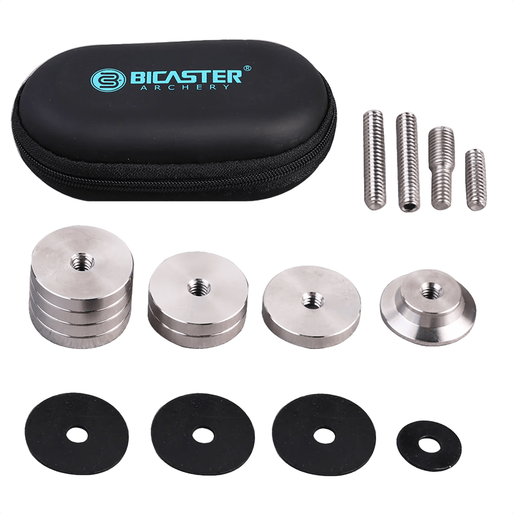 - 1 pc. Adapter screw 1/4“ UNC to 5/16” UNC (this allows you to mount the weights directly into the stabilizer socket of a bow)