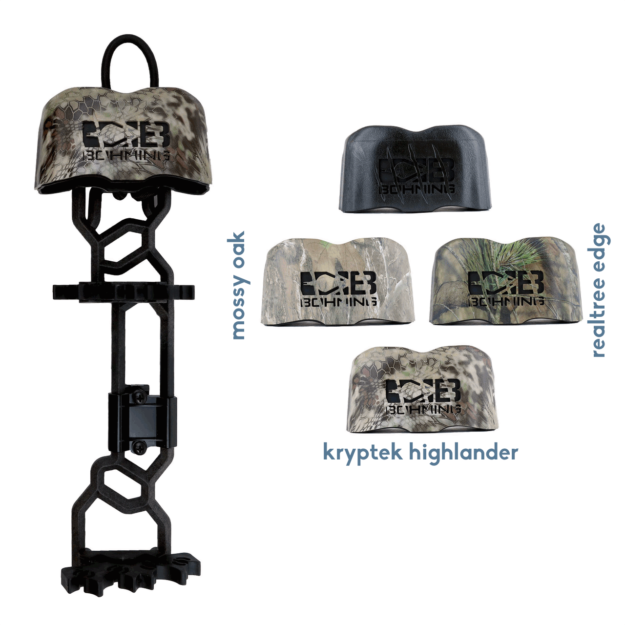 The dual-retainer, four arrow Bruin Quiver accommodates any diameter of hunting arrow, even crossbow bolts. It has 2" (51mm) of vertical adjustment capacity, a molded hood, and a sound-dampening liner for quiet storage of any broadhead style. An updated tree hook eliminates vibration and allows for easier hanging.