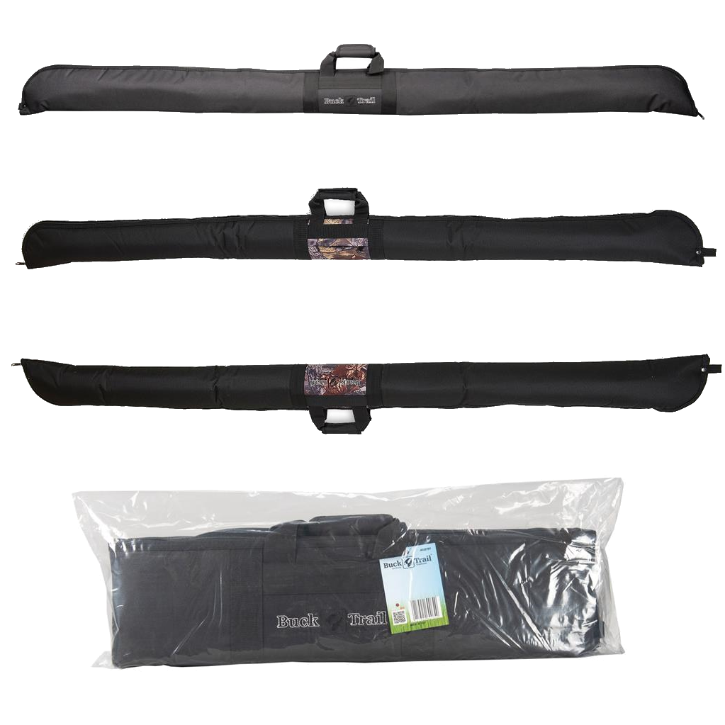 Longbow soft case from Buck Trail. Inner lining with soft foam offering great protection. Can hold longbow up to 72". Included one small zipper pocket. Pure black or black with camo accents.