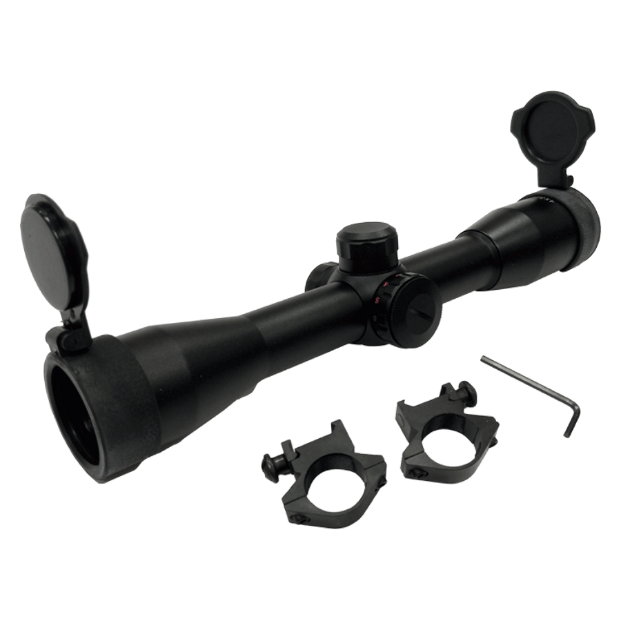 High quality illuminated reticle Scope suitable for standard Picatinny rail. The lens with 32mm diameter provides a clear image at 4x magnification. It is EK's top range scope.
