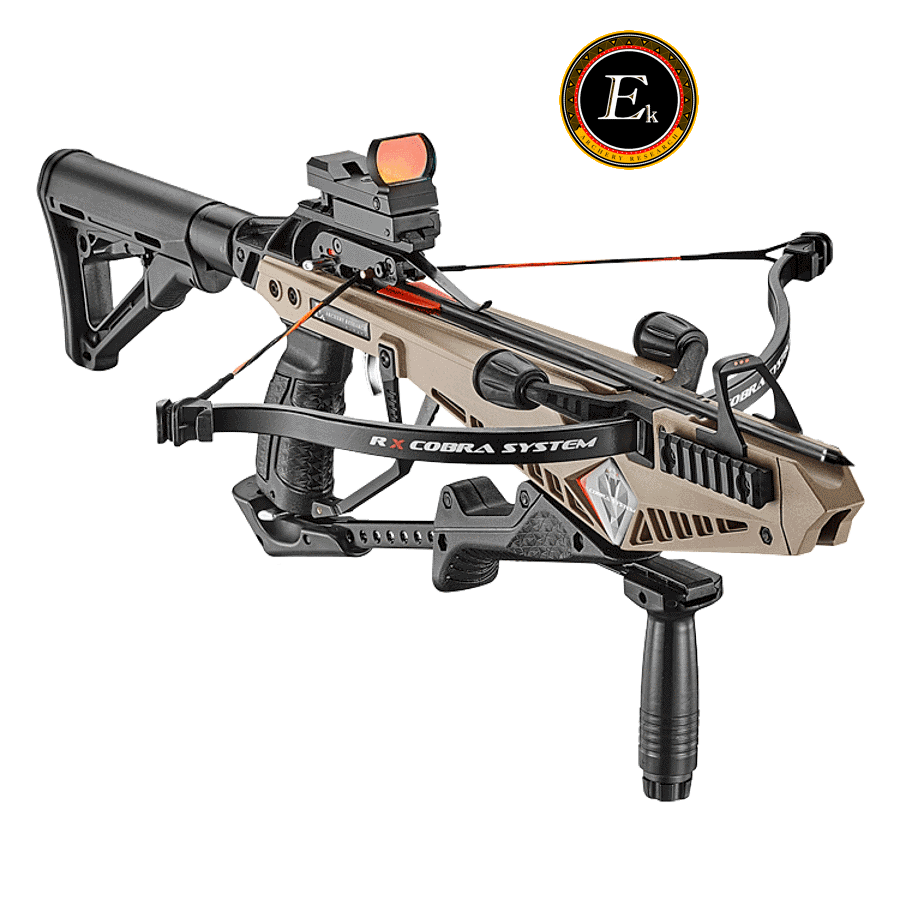 The EK Cobra System RX is the sister model of the absolute bestseller R9, the performance has been increased again compared to the R9: 130 pounds and 230 fps. This crossbow is self-cocking and therefore especially versatile and easy to use. In addition to a new colour scheme, which is very well received, there is also an innovation for the bow. It has string stops as standard.