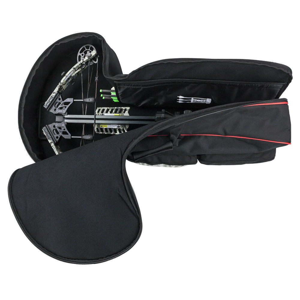 Designed for today’s more compact crossbows, the Slayer Crossbow Case offers the protection needed to keep your bow safe when chasing big game or storing in the off-season. Plenty of padding with rip-stop exterior shell fabric & heavy corner trim create the ideal safe-space for a crossbow. Four total storage compartments (3 external, 1 internal) provide enough space for all your accessory needs. Padded divider allows safe storage of quiver with bolts for quick unpack-and-hunt convenience. Exclusive top carry handle holds crossbow horizontal and prevents the side tipping of other cases; also includes Built-in adjustable shoulder strap. Fits crossbows up to 22” wide x 36” long.