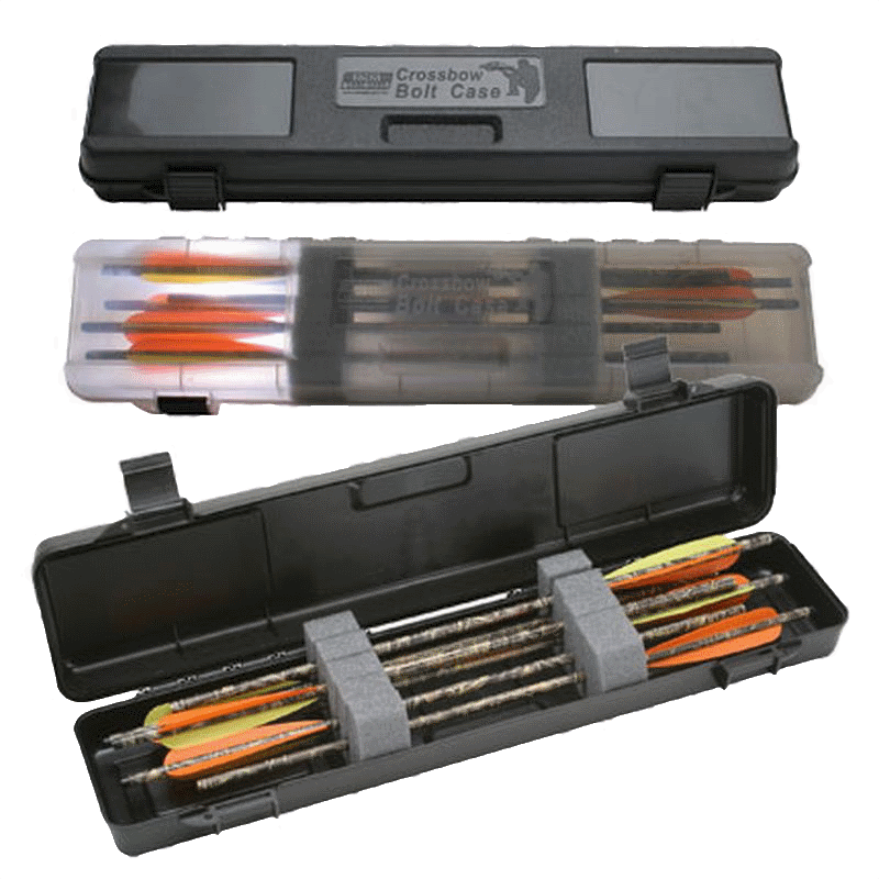 For transporting and storing, this Crossbow Bolt Case protects a dozen crossbow bolts (up to 23.1" in total length). If purchased in clear smoke, two windows at either end present an unobstructed view of the points or fletching inside. Bolts are protected and separated with notched foam padding and the snap-over latches and double padlocks tabs provide the security you can count on.