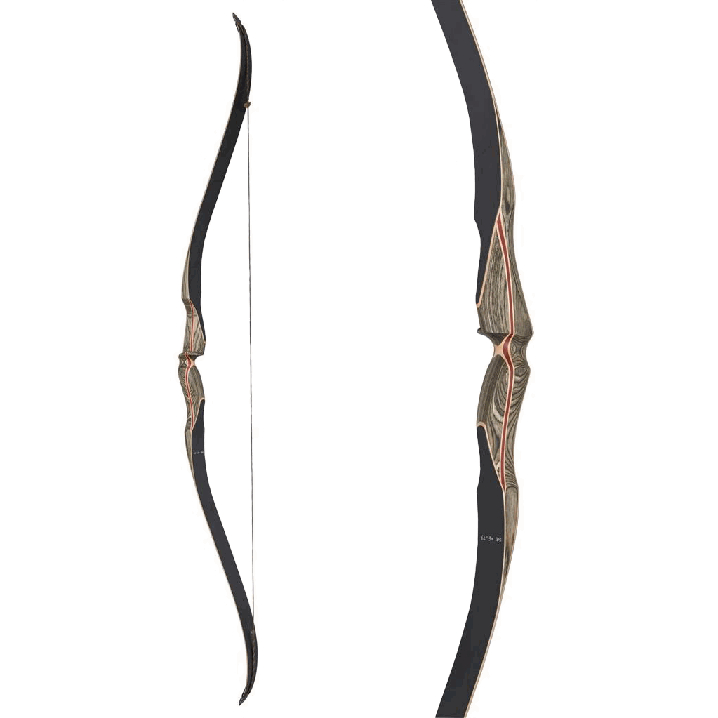 Wunderschöner Jagdrecurve, dessen Mittelstück aus grauem Dymond-Holz besteht - ein absoluter Hingucker am Parcours! Die Wurfarme sind aus Ahorn und mit schwarzem Laminat überzogen.