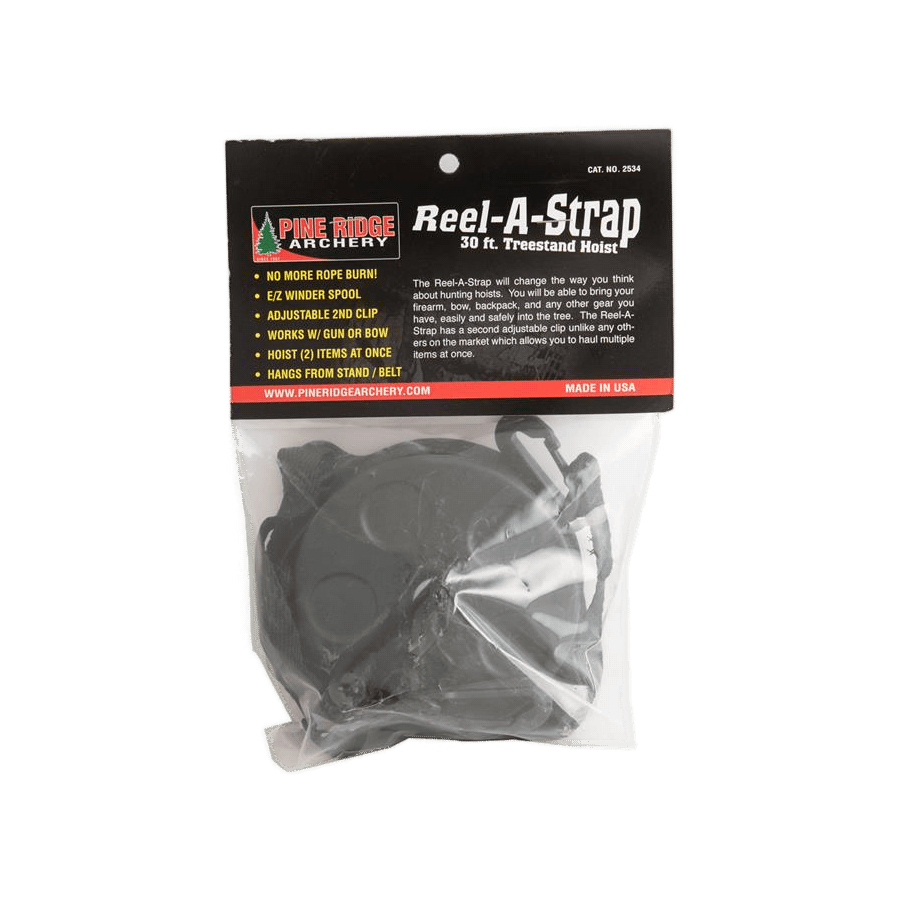 Der Reel-A-Strap ist das Nonplusultra unter den Ausrüstungshaltern. Mit ihm können Sie Ihre Schusswaffe, Ihren Bogen, Ihren Rucksack oder jede andere Ausrüstung einfach und sicher auf den Baum bringen. Der Reel-A-Strap verfügt über einen zweiten verstellbaren Clip, mit dem Sie nicht nur mehrere Gegenstände hochziehen können, sondern auch verhindern, dass diese beim Hochziehen aneinanderstoßen. Dies ist besonders wichtig für Jäger! An der Oberseite des Reel-A-Strap befindet sich ein praktischer Haken und ein Gurt, den Sie beim Aufstieg auf den Baum um Ihren Gürtel oder Ihre Gürtelschlaufe legen können. Dies ist auch nützlich, wenn Sie sich bereits auf dem Baum befinden, da Sie den Reel-A-Strap an einem nahe gelegenen Ast aufhängen können. Wie bereits erwähnt, ist dies der ultimative Ausrüstungsaufzug. Der Reel-A-Strap hat einen Durchmesser von 4 Zoll, ist also nicht sperrig, und besteht aus einem 3/4-Zoll-Gurtband.