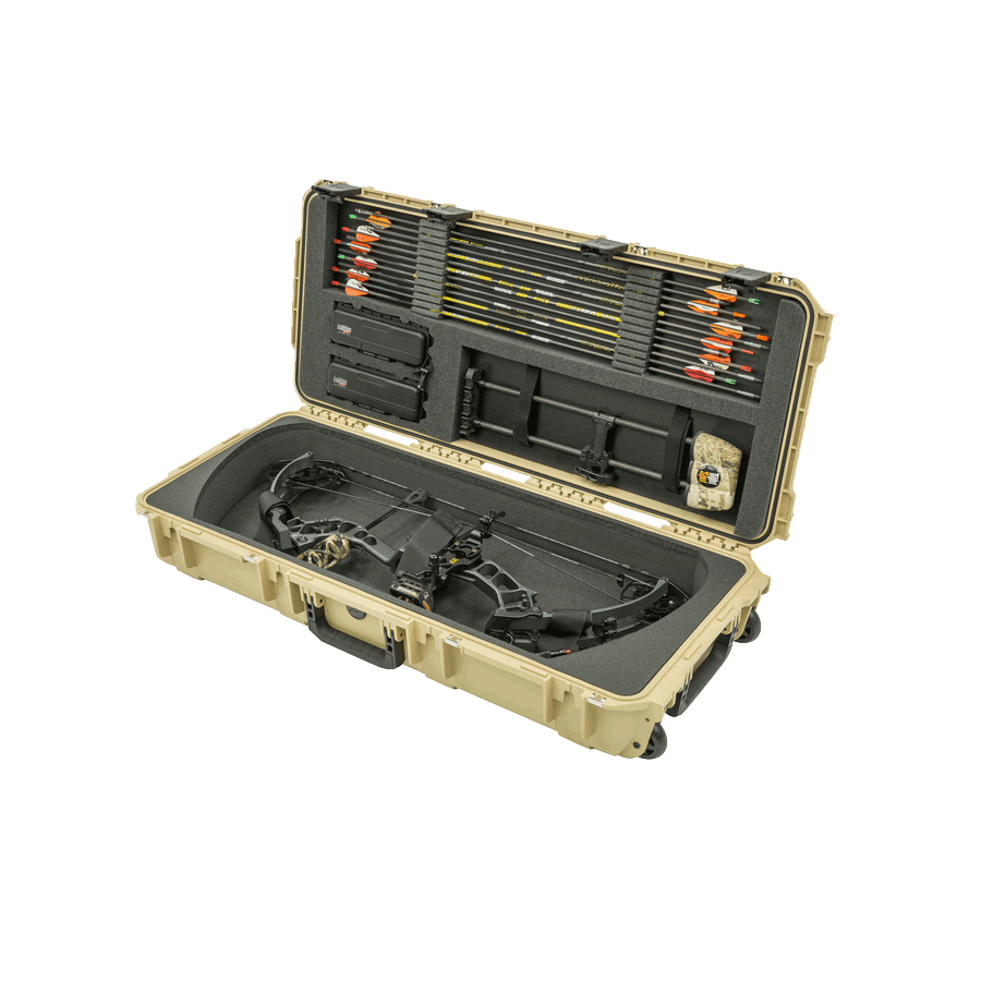 The iSeries Mathews small single bow case fits Mathews parallel limb bows up to 34.5" long (including 27" V3 and 28" VXR) and includes lid storage for the quiver, a dozen arrows, and two accessory boxes (sold separately – Part# 3i-0702-1B).
