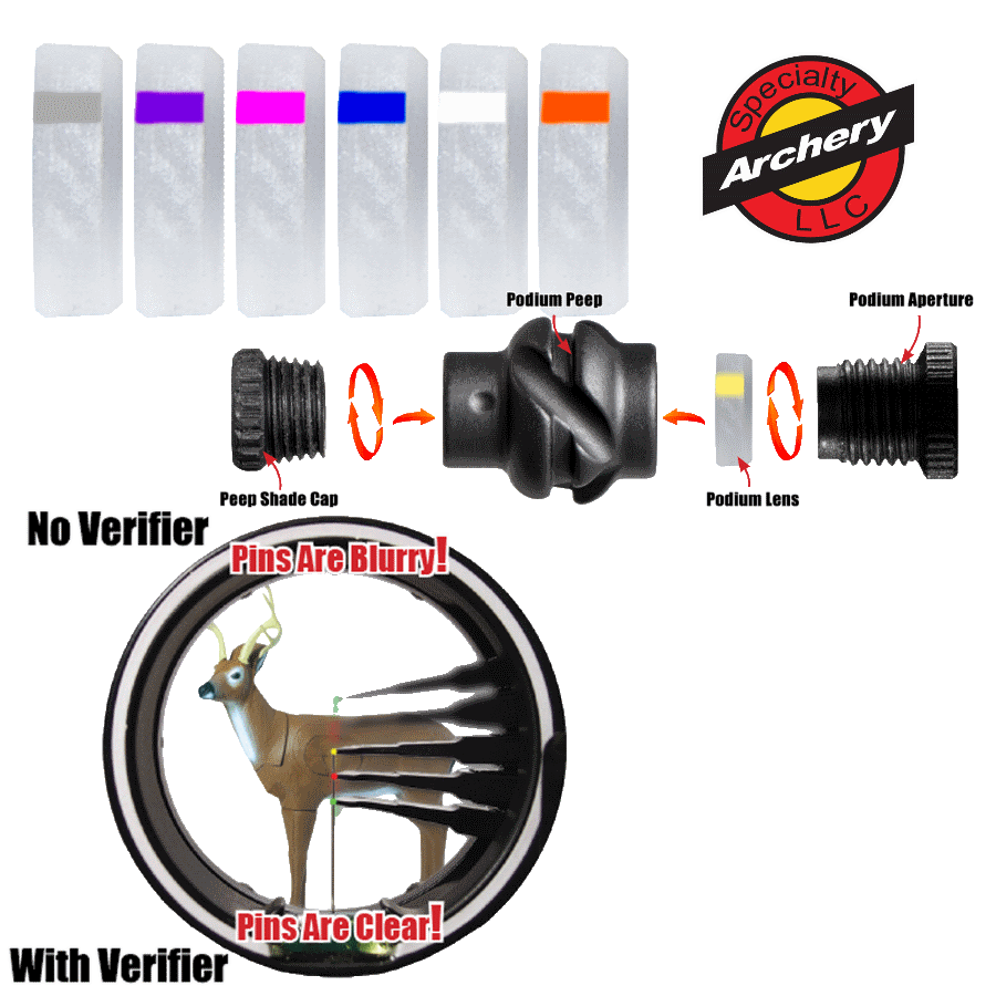 NOTE: Podium Peep™ Apertures, Podium Peep™ Clarifiers, and Podium Peep™ Verifiers fit into Specialty Archery Podium Peep™ ONLY. NOT compatible with other Specialty Archery peeps.