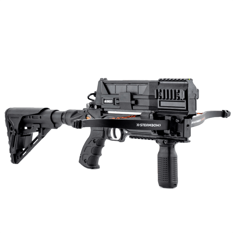 Jeweils 10 Pfeile passen in die abnehmbaren Magazine. Es lassen sich alle Arten 6,2 x 162 mm Pfeile laden, z.B. Jagdpfeile, Bodkinpfeile oder Sportpfeile. Die Magazine haben in etwa die Größe von STANAG Magazinen (z.B. für eine AR-15/M-4) und lassen sich in den meisten Magazintaschen gut transportieren.